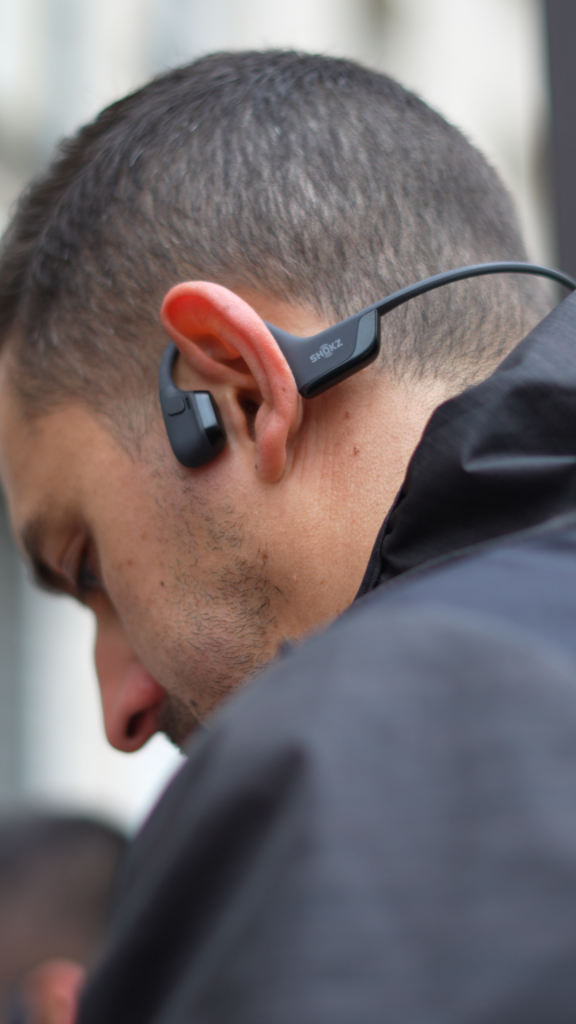 Les casques Shokz sont rapidement distribués. Pas le temps d’attendre : l’échauffement débute aussitôt pour faire monter la température corporelle.